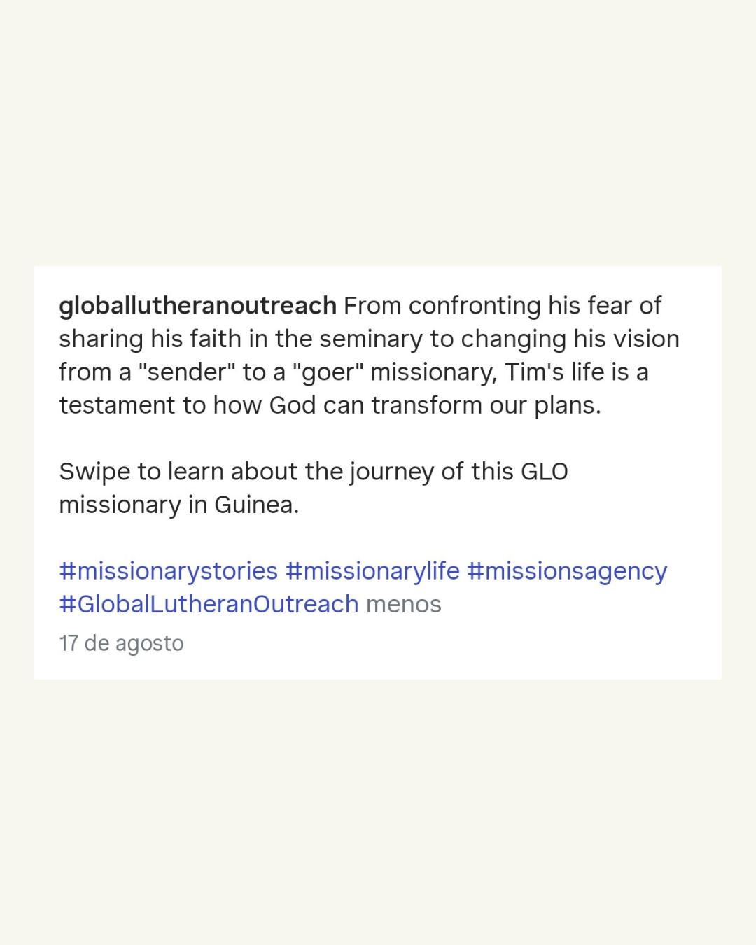 Carrusel acerca de la historia de un misionero de GLO. Es una adaptación de un artículo publicado en el sitio web de esta ONG. Ver el carrusel original. Sobre este caso, hablé en mi podcast.